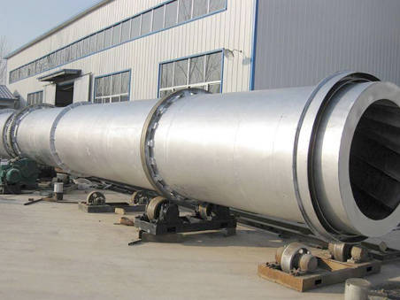 雙筒烘干機(jī)由沸騰爐燃燒產(chǎn)生的熱煙氣,通過(guò)混合室的調(diào)整,溫度達(dá)800~850℃狀態(tài)下進(jìn)入烘干機(jī),喂料系統(tǒng)將小于30毫米的物料喂入烘干機(jī)的預(yù)熱帶,經(jīng)進(jìn)料螺旋、螺旋狀的角形揚(yáng)料板和萬(wàn)字形揚(yáng)料組合作用下物料被推進(jìn)、拋撒、預(yù)熱、逐步進(jìn)入烘干帶。